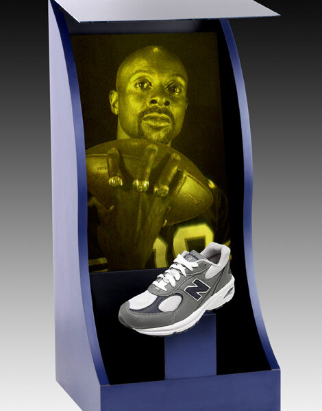 A full-height holographic display designed for high-traffic environments, delivering maximum visibility and impact for products, messaging, and brand storytelling