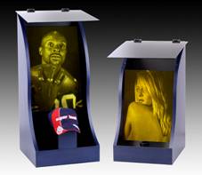 Ikuo, our director of development, has been busy reconstructing the NYC lab for production of an exciting new product, code name MVH (Multiple Video Hologram). Several video clips will be captured in a single holographic plate or film sheet. Motion is seen as the viewer or the hologram is moved.